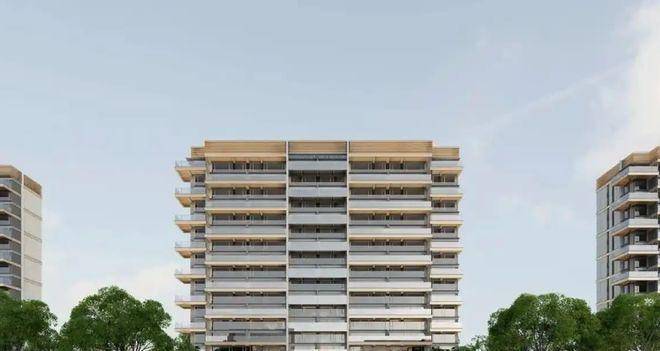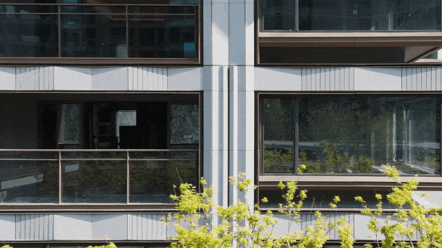 立面结构采用西方古典建筑经典制式“横三竖五”进行立面切分,如基座、中段、塔冠分为三段式,竖向阳台、飘窗分为五段式,极致中轴对称。设计以承载美为出发点,采用纯粹和质朴的空间和材质,从古典形态中提炼出简洁而有力的符号,强化了建筑的形式感和空间感。