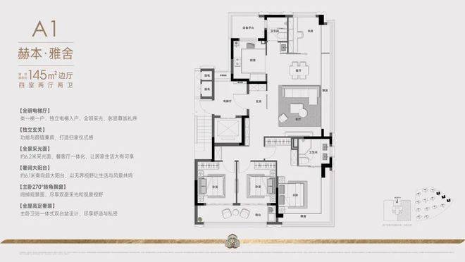 华润沄璟文华轩售楼处电话☎:✔✔✔【预约☎】建面约145㎡的户型:项目采用创新的两梯两户设计,通过巧妙的空间规划实现类一梯一户的尊享体验。双电梯厅以防火门分隔,确保住户私密性。专属电梯直达户门,10平方米的270度转角入户花园,兼具采光通风优势,将功能性与仪式感完美结合。